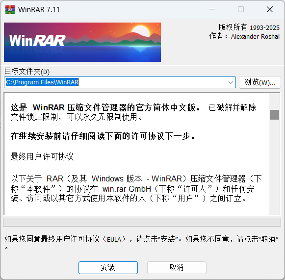WinRAR 7.11 Final 官方正式版WinRAR简体中文版商业版 (2025/04/01)