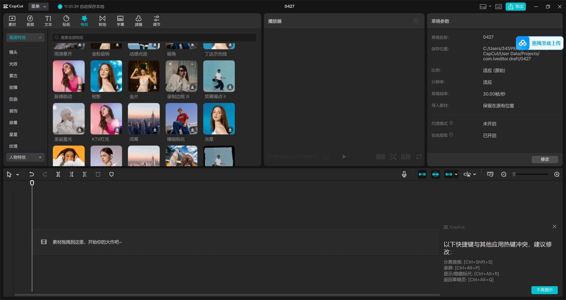 主要功能:支持色度抠图、曲线变速、视频防抖、图文成片等高阶功能切割变速倒放,功能简单易学,留下每个精彩瞬间精致好看的贴纸和字体,给视频加点乐趣抖音独家曲库,让视频更“声”动专业风格滤镜,一健轻松美颜,让生活一秒变大片免费、样式丰富、全民爱用