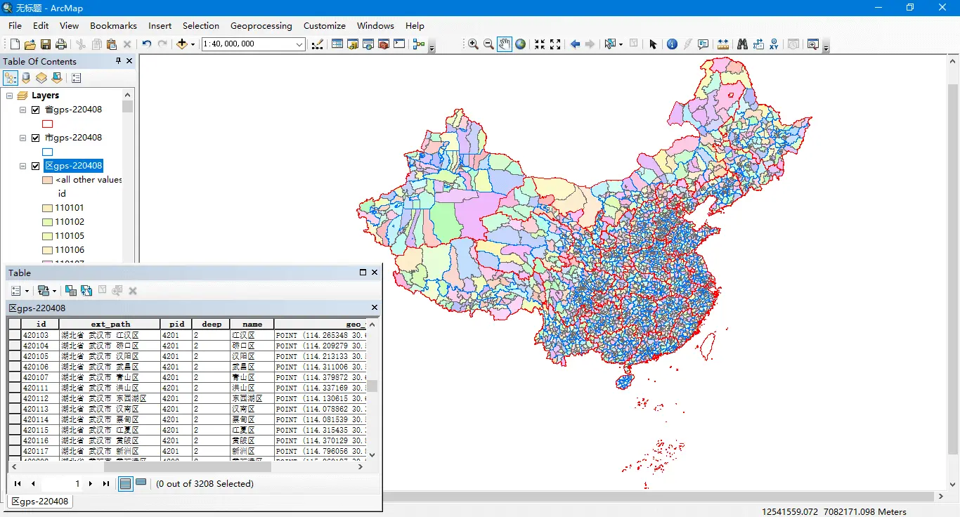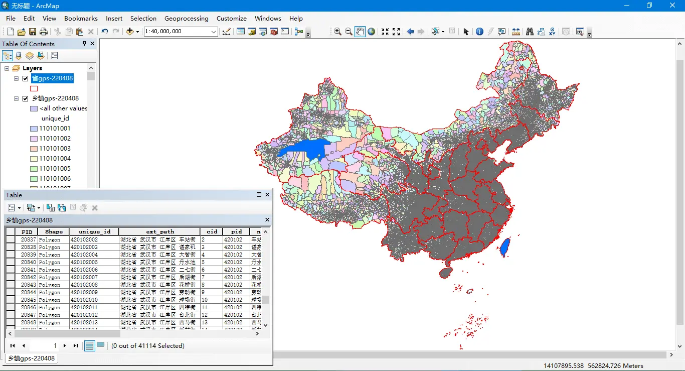 全国乡镇边界(ArcMap Mercator投影):