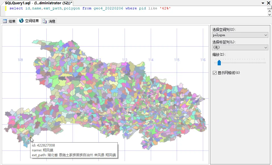 湖北省乡镇(SQL Server查询空间结果):