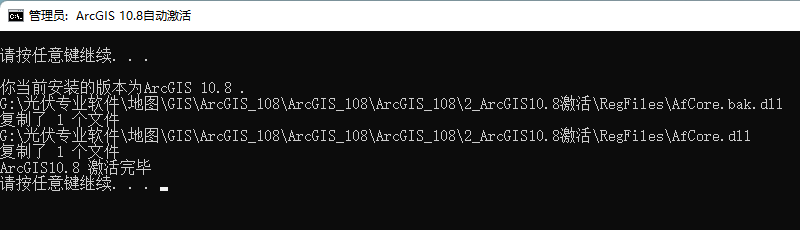 9、按任意键开始运行激活工具,显示激活完毕后按任意键关闭
